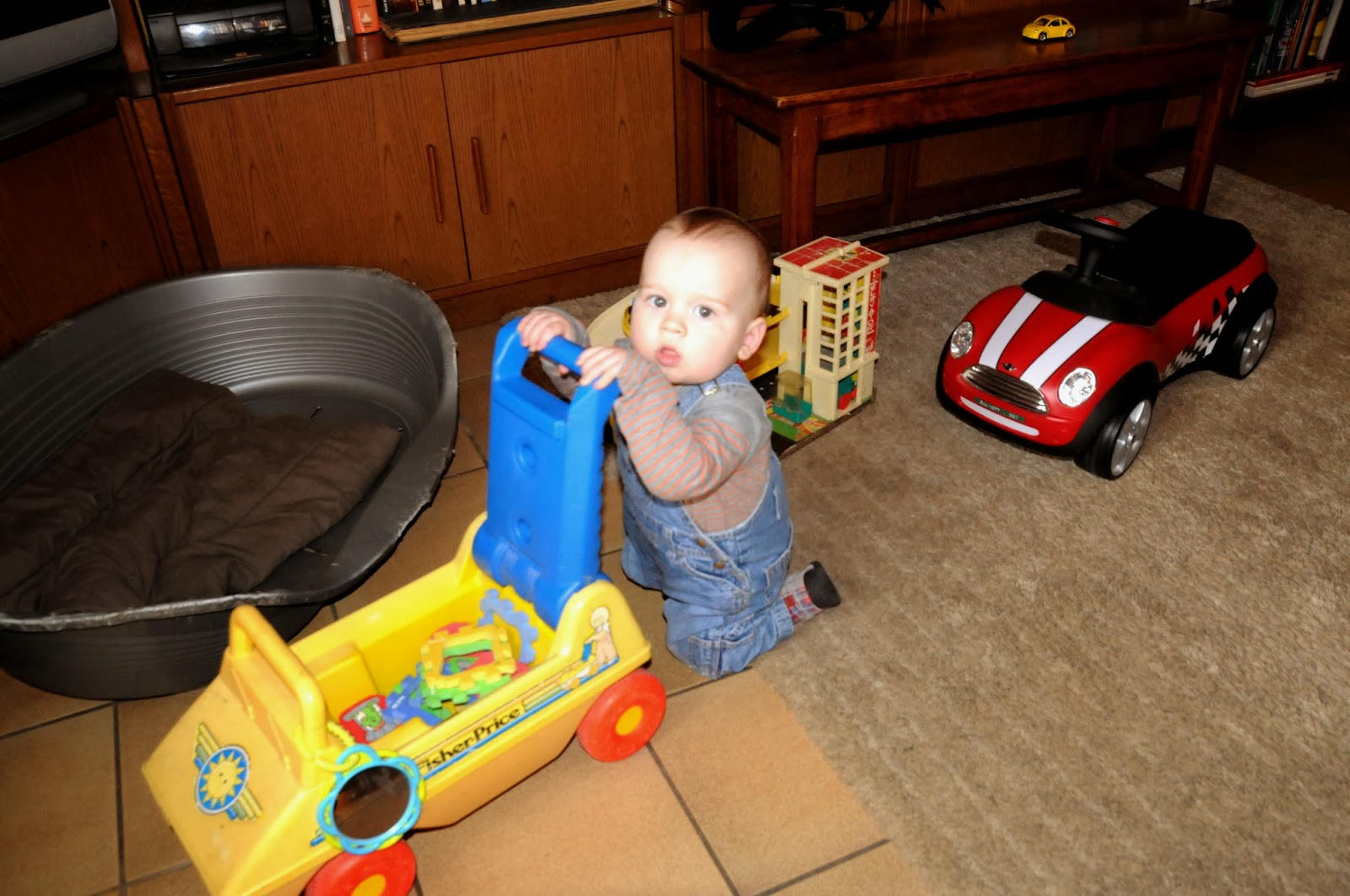 et c'est parti pour quelques tours de piste ... infatigable le petit d'homme ... et il sait négocier les tournants sans cogner les meubles ...